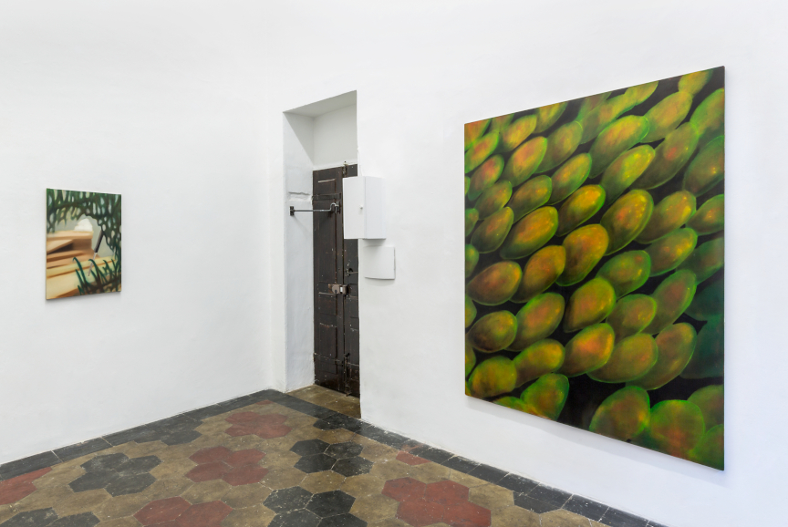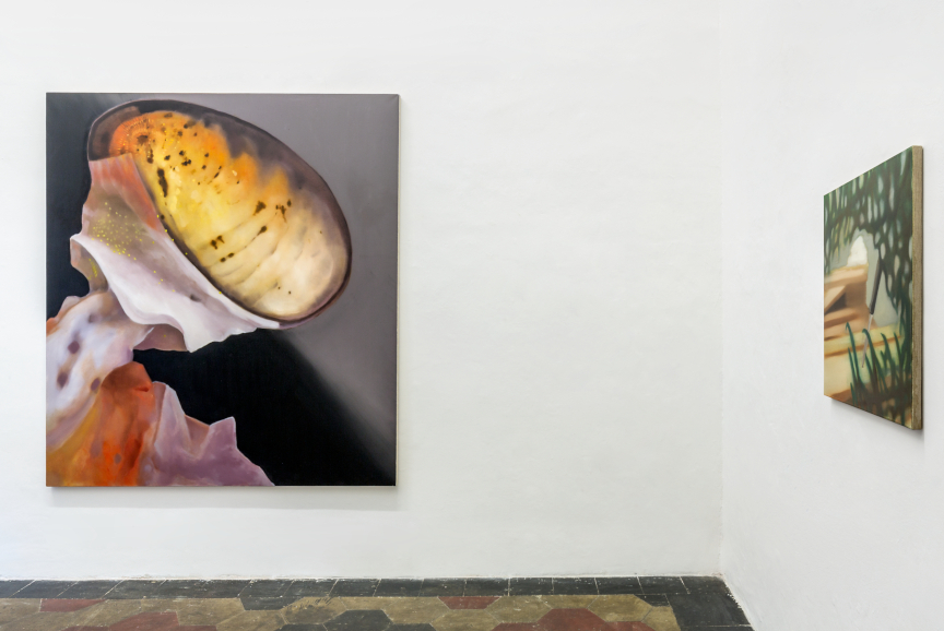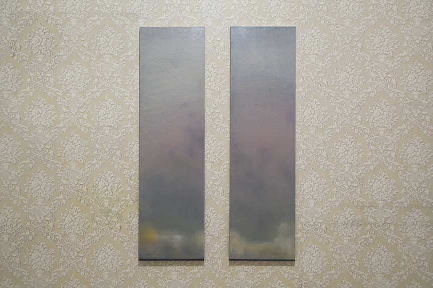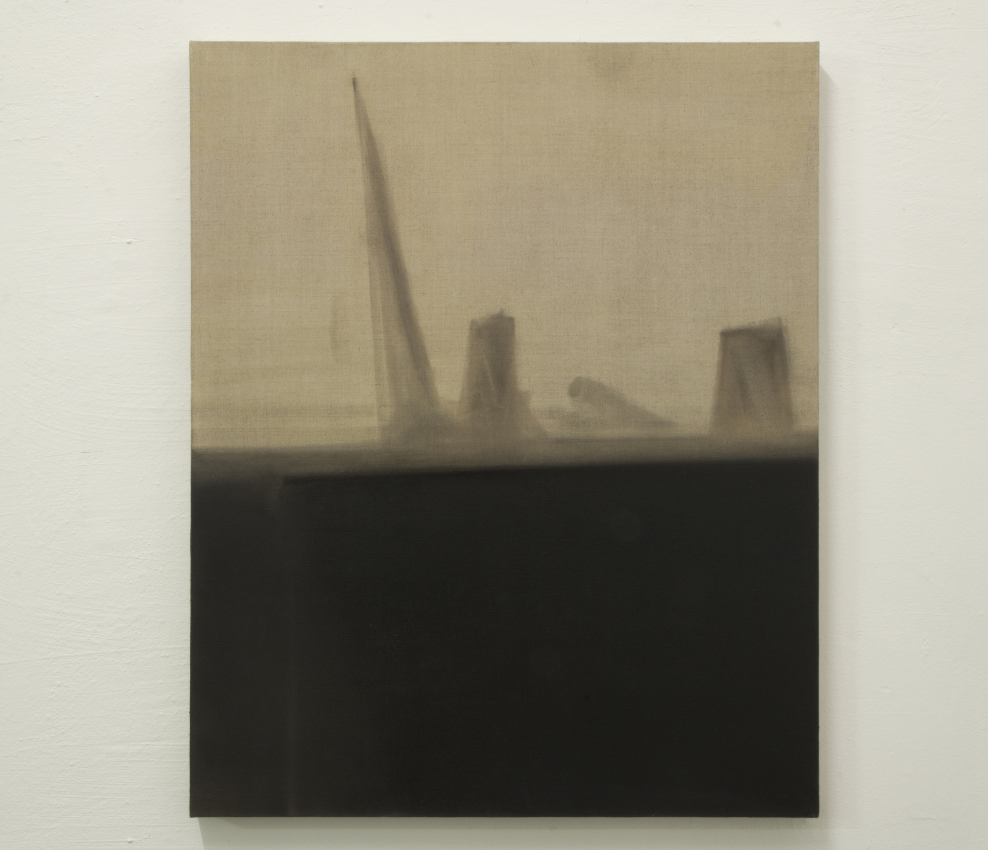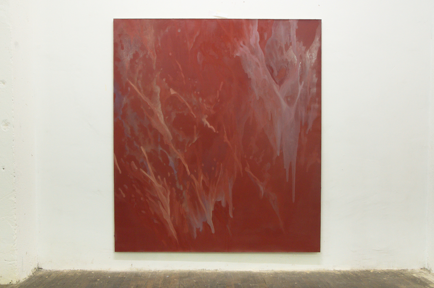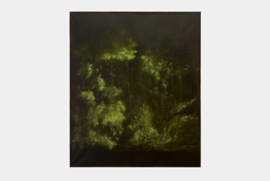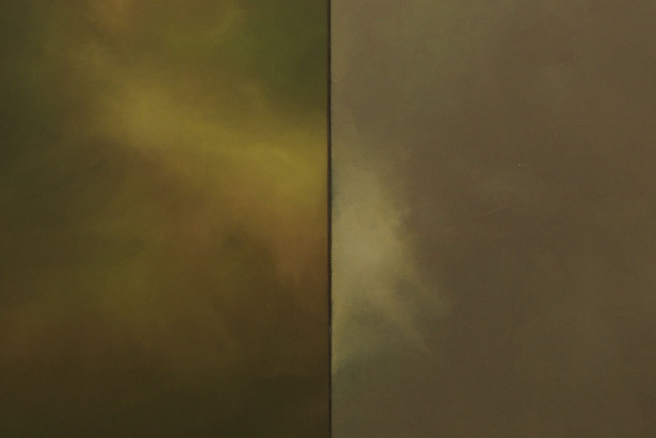 Ho dipinto il paesaggio dietro di me guardandolo riflesso in uno specchio nero davanti a me via Nietzsche#2