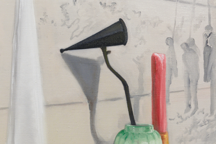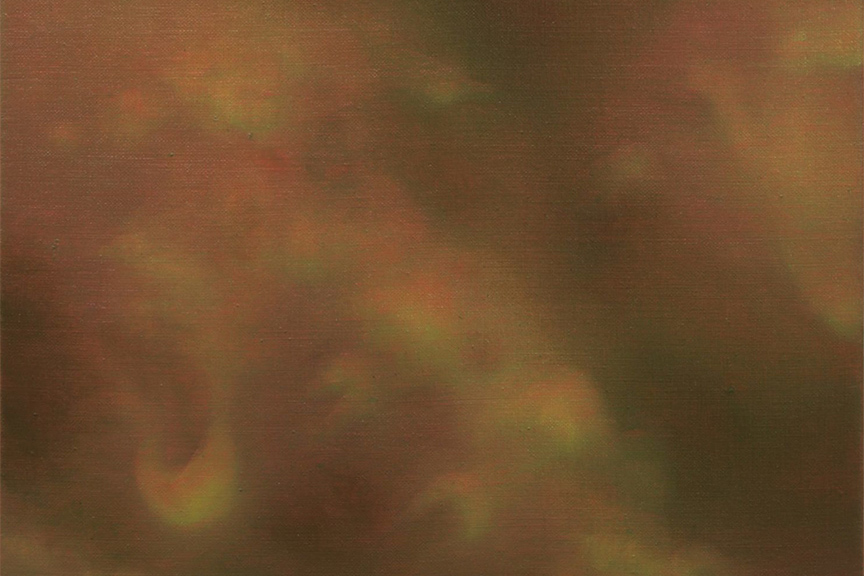 Ho dipinto il paesaggio dietro di me guardandolo riflesso in uno specchio nero davanti a me via Nietzsche#3