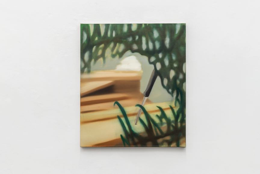 Ho dipinto il paesaggio dietro di me guardandolo riflesso in uno specchio nero davanti a me via Nietzsche#1